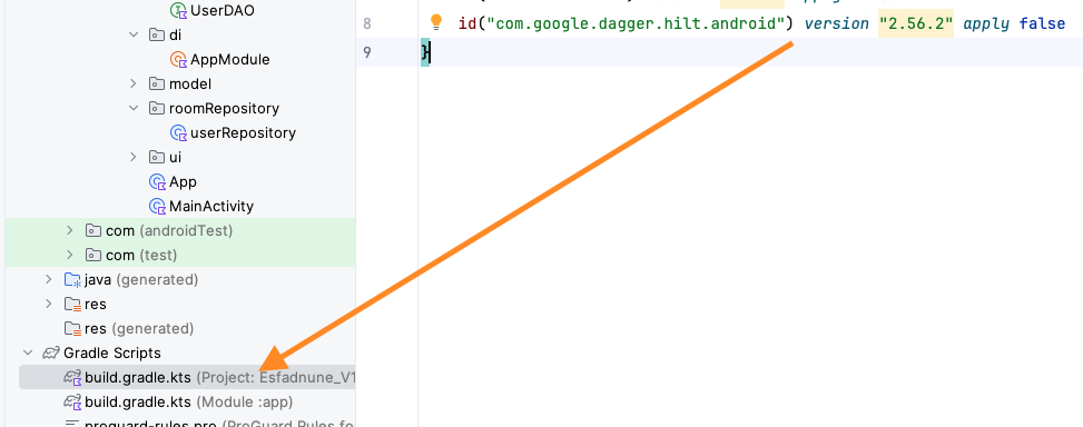 اول باید پلاگین و کتابخونه‌های Hilt رو به فایل‌های build.gradle.kts پروژه‌تون اضافه کنید.