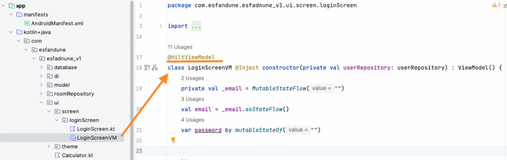اینطوری Hilt خودش یه نمونه از UserRepository می‌سازه و به MyViewModel می‌ده، بدون اینکه شما درگیر جزئیاتش بشین.