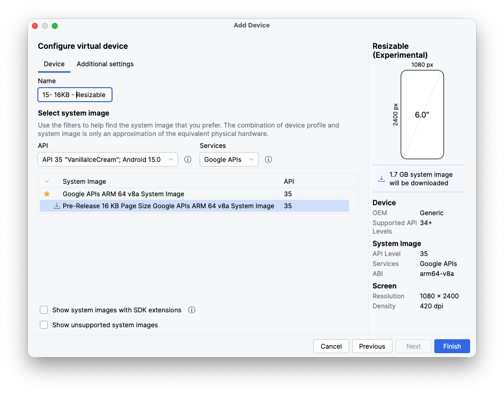 شبیه‌ساز اندروید (Emulator) همیشه یک گزینه است که در حال حاضر (۴ آبان ۱۴۰۴)‌ می تونید اندروید ۱۶ یا ۱۵ رو به صورت pre release نصب و اجرا کنید: